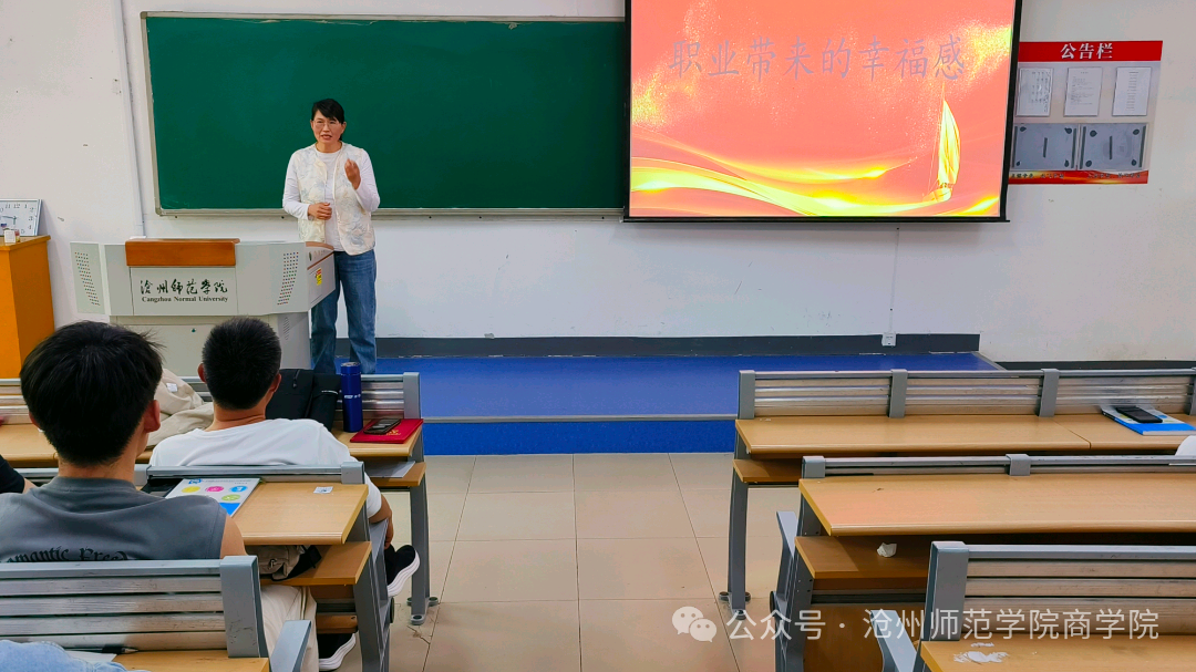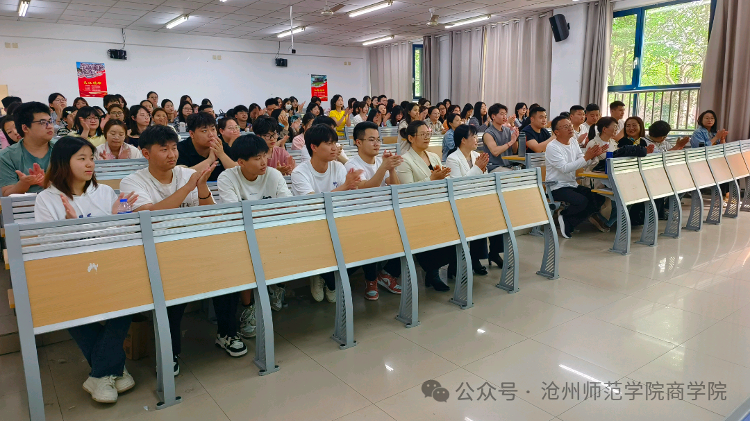 为促进旅游业发展在高校中的交流,推动学术与行业融合、精准培养复合型人才,推动产学研落地的同时整合资源并激发学生对旅游业热情,促进沧州地区文旅产业发展。商学院特别邀请到沧州旅游协会导游分会会长许亚为,河北省十佳导游员、沧州旅游协会导游分会副会长宫瑞梅,国家文旅部万名英才计划金牌导游员李成林,于4月23日下午开展导游进校园分享会,商学院院长张兰新,副院长李洪维,国际商务教研室主任张红岩以及22级辅导员邓倩倩老师出席本次活动,22级酒店管理和24级酒店管理专接本同学参加。