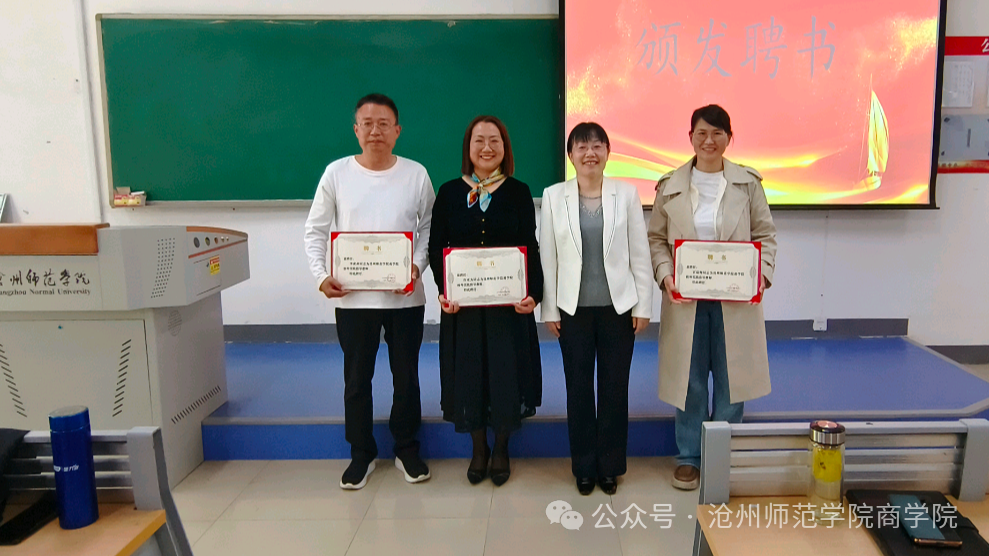在热烈的掌声中,校外指导实践教师聘任仪式正式开启。这一环节是对校外实践导师专业能力的高度认可,是深化产教融合、协同育人的关键一步。商学院院长张兰新为校外指导实践教师逐一颁发聘任证书。