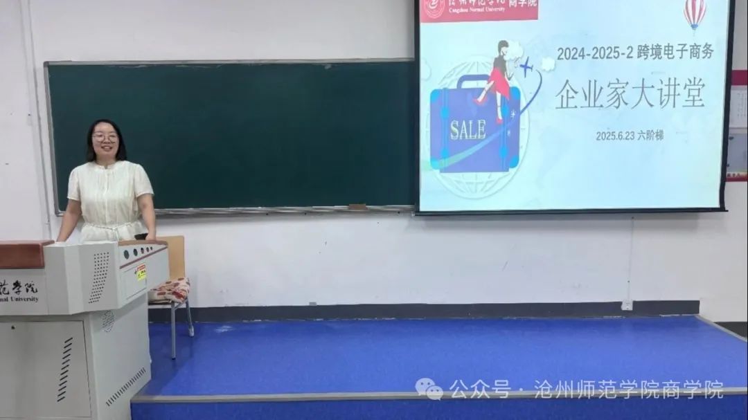 6月23日,商学院成功举办本学期第三场“企业家大讲堂”活动,特邀沧州市跨境电子商务协会讲师、河北精航宇阀门制造有限公司运营经理孙蕊,于文科楼六阶梯教室为百余名国际商务和市场营销专业学生开展“跨境电商营销管理:站外营销”专题讲座,以实战视角揭开了海外社媒运营的神秘面纱。作为校企共建课程《跨境电子商务》的重要组成部分,本次活动旨在深化产教融合,助力培养适应京津冀地区跨境电子商务发展的高素质应用型人才。商学院副院长李洪维、教师邵晓琳和2022级市场营销专业同学共同参与了此次学习。