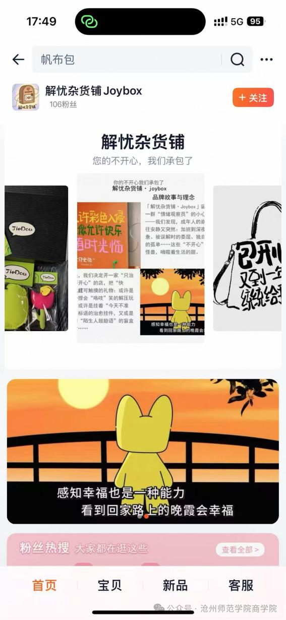 正是在这样一套系统化、沉浸式的能力培养体系下,学生王慧晴的创业梦想被点燃并得以孵化。她敏锐捕捉年轻群体对“治愈”与“解忧”的情感需求,精准定位店铺方向,选定创意配饰与暖心小摆件,并赋予店铺一个极具辨识度的名字——《忘忧杂货铺》,创新融入“Joybox快乐盒子”的后缀设计。从店铺视觉风格的每一处细节打磨,到商品描述的精准提炼,王慧晴在实践中将课堂所学发挥到极致。