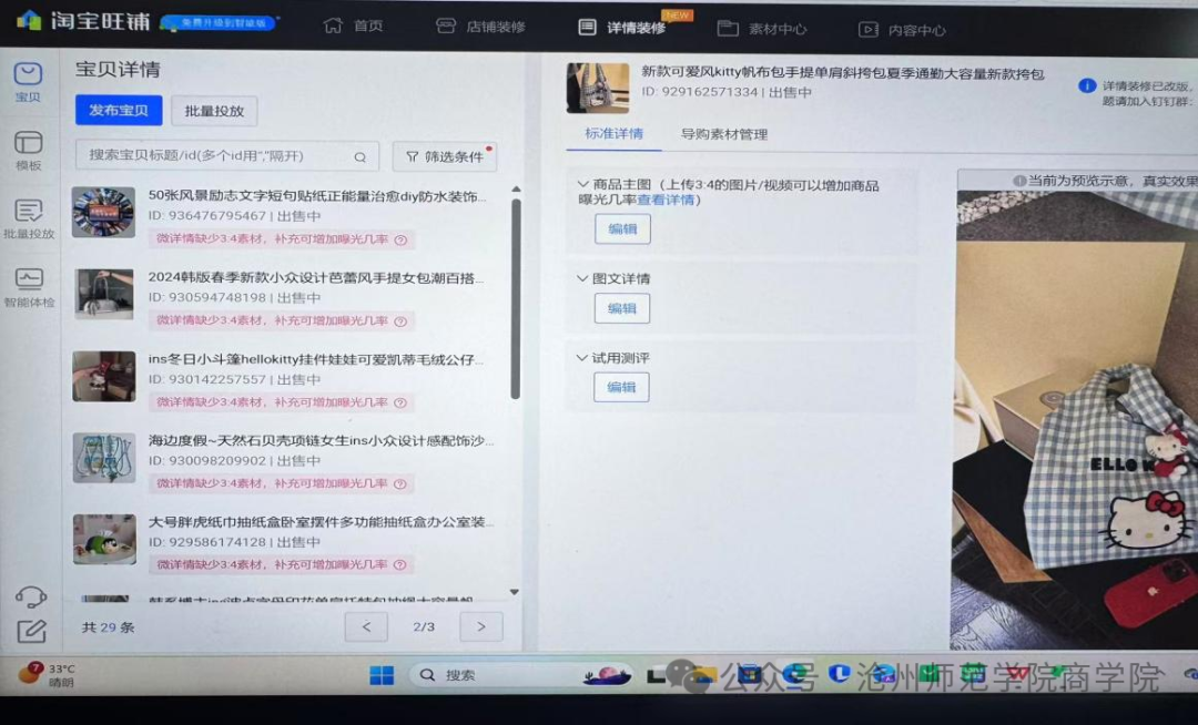 沉浸实训,场景逼真: 从店铺定位、选品逻辑、视觉设计、商品上架、关键词优化,到后台运营、客户服务,每个环节都要求学生“真刀真枪”地动手操作。更通过精心设计的模拟场景(如突发客诉、库存危机),逼学生直面问题,锻炼临场应变与系统性解决方案能力。