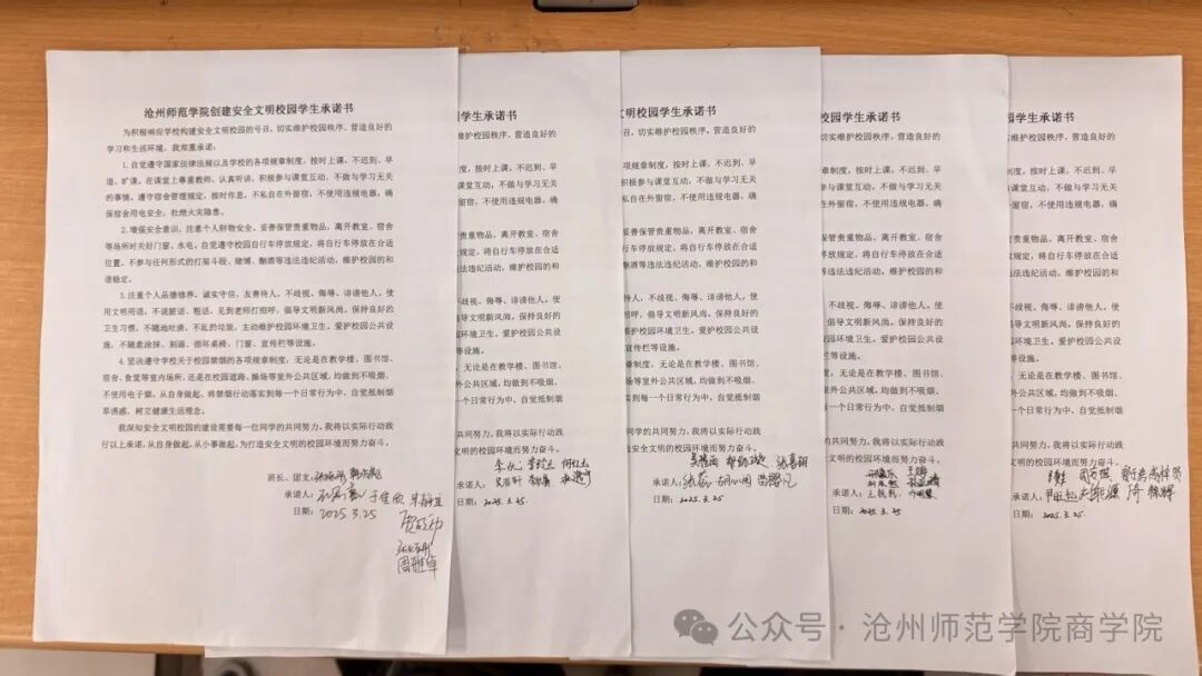 商学院全体成员迅速响应文明行动号召,以宿舍为单位,签署《文明行动倡议书》。班干部充分发挥模范带头作用,率先签名许下践行文明行为的庄严承诺。同学们也纷纷表示将积极参与,付诸于实际行动,立志用点滴努力,在校园里营造文明新风尚。