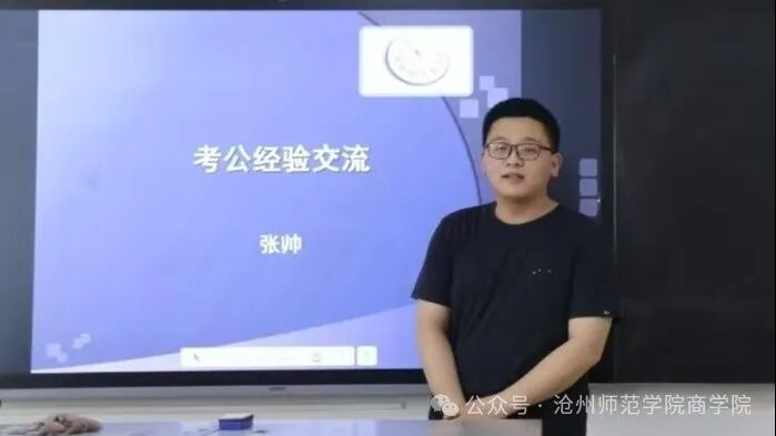 在考公的漫漫征途上,每一步都交织着挑战与机遇,如何破局前行,成为无数追梦学子亟待解答的难题。为助力沧州师范学院商学院学子明晰考公路径,商学院邀请到21级优秀毕业生李嘉伟、胡雨涛、张帅、赵毅力,于5月13日在文科楼14教开展此次考公分享会,汇聚经验智慧,点亮大家的逐梦之光。本次分享会由团总支书记邓倩倩老师主持。