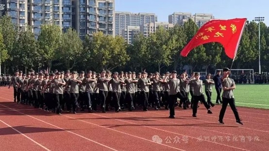伴随着激昂的乐曲,我院连队的连旗迎风招展,如同商院学子蓬勃的青春力量。新生们踏着整齐划一的步伐朝主席台行进,个个精神抖擞、神采飞扬。他们以坚定有力的脚步踏出强者的风范,用响亮激昂的口号传递出勇者的胸襟。排头标兵手握旗杆,身姿挺拔,红旗迎风招展;队列标兵,朝气蓬勃,步伐刚劲有力。他们目光坚定如炬,身姿挺拔如松,将商院学子的朝气与坚毅展现得淋漓尽致,赢得现场阵阵掌声。