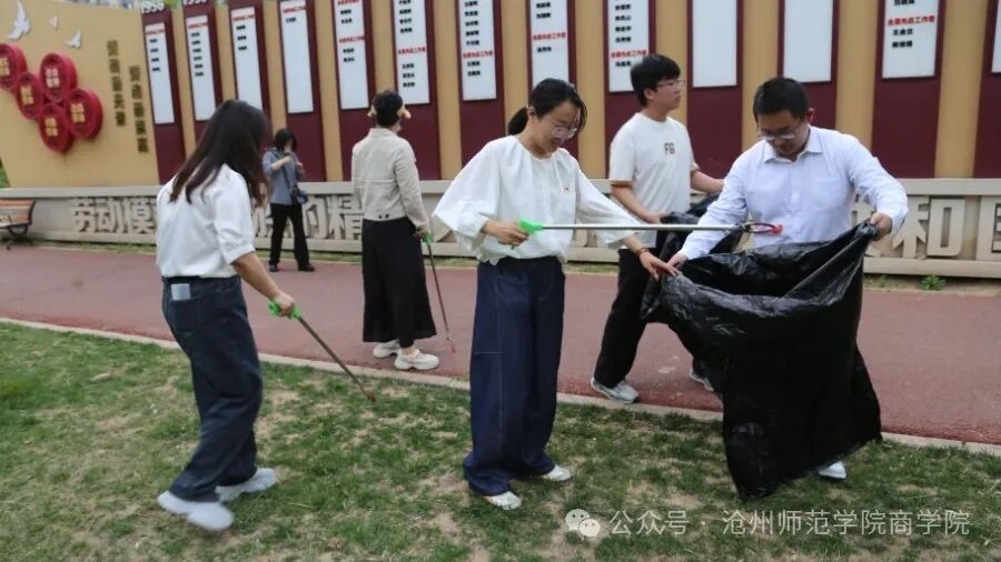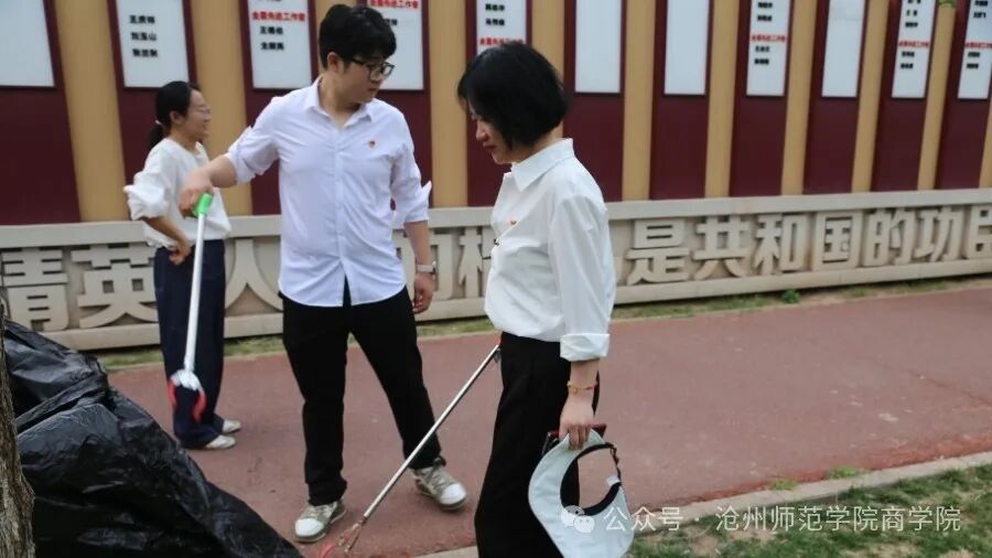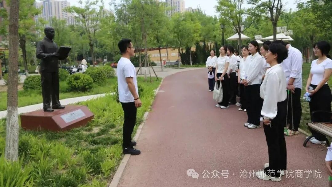 5月16日,商学院党总支组织党员师生代表及入党积极分子前往沧州市劳动公园,开展以“传承劳动精神,践行志愿服务,展现党员风采”为主题的党日活动。本次活动旨在通过参观学习、志愿服务等形式,增强党员师生的责任意识与使命担当,弘扬中华民族崇尚劳动、热爱劳动的传统美德,推动学院党建工作与实践活动的深度融合。
