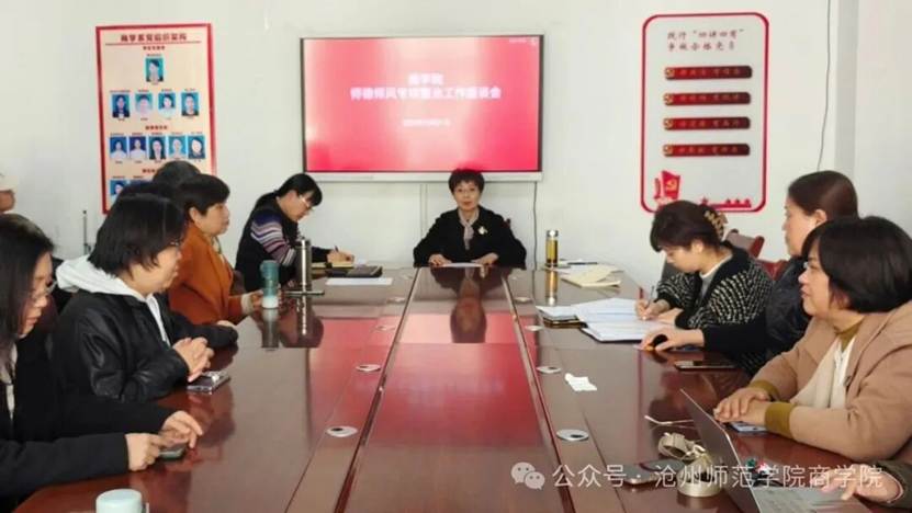 为深入贯彻落实上级关于加强师德师风建设的部署要求,进一步强化学院教师的责任担当与育人使命,提升教师队伍思想政治素质和职业道德水平,10月21日,商学院召开师德师风专项整治工作座谈会。学院党总支书记主持会议,全体教师参加此次座谈会。